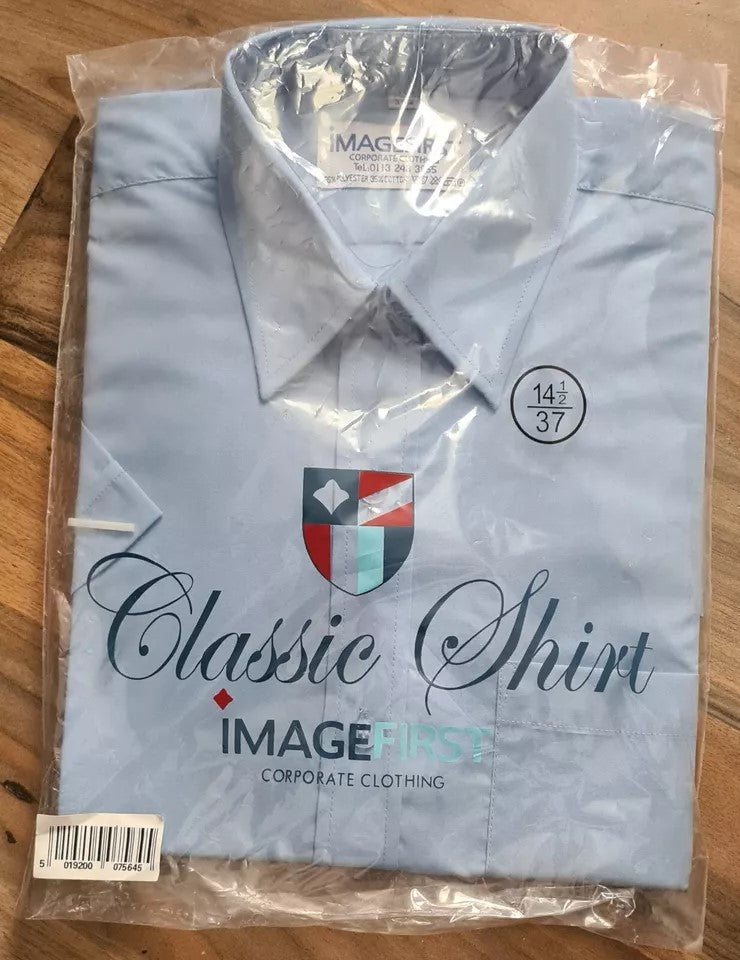 Mens Image First Short Sleeve Shirt Button Up Plain Formal Smart Work Business Blue 14.5"
