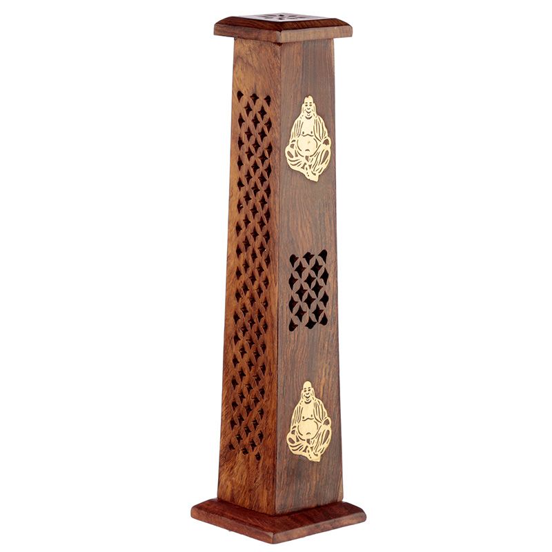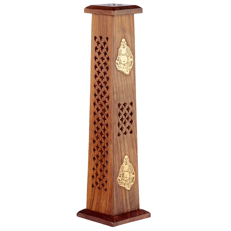 Sheesham Wood Ashcatcher Incense Tower Burner Chinese Buddha